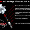A low pressure fuel pump, which varies from ~40-95psi, delivers fuel from the gas tank to the high pressure fuel pump. Then the high pressure, camshaft driven pump pressurises the fuel to upwards of 130bar (almost 1900psi!) in order to spray fuel directly into the combustion chamber. Unfortunately on cars that have many modifications, the stock fuel pump cannot flow enough volume of fuel to maintain the system pressure and the car suffers from the familiar “fuel cut” that so many modified customers experience.
