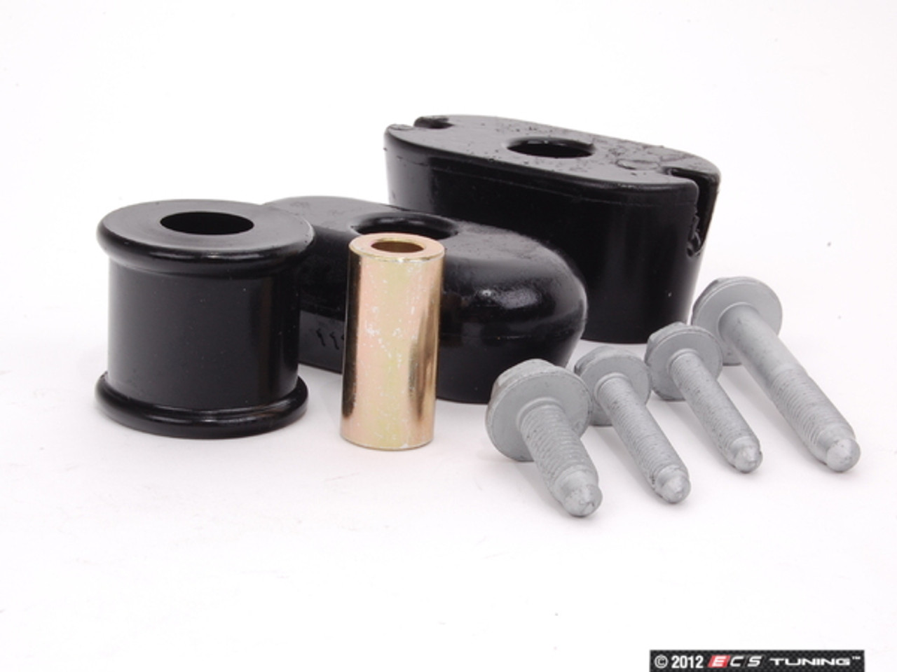 The ECS Tuning dog bone mount kit includes three 90A durometer urethane bushings that replace the softer stock rubber bushings.