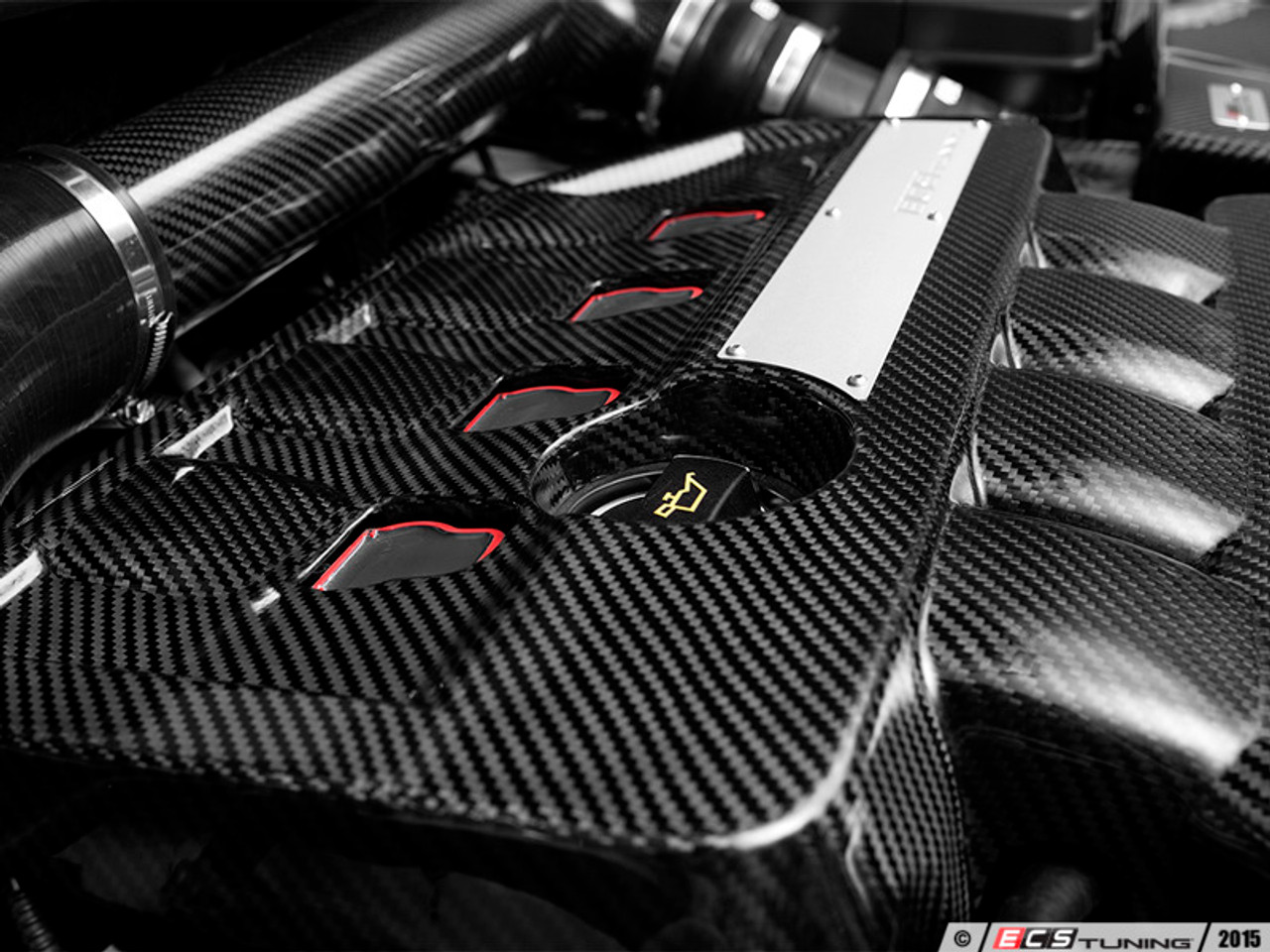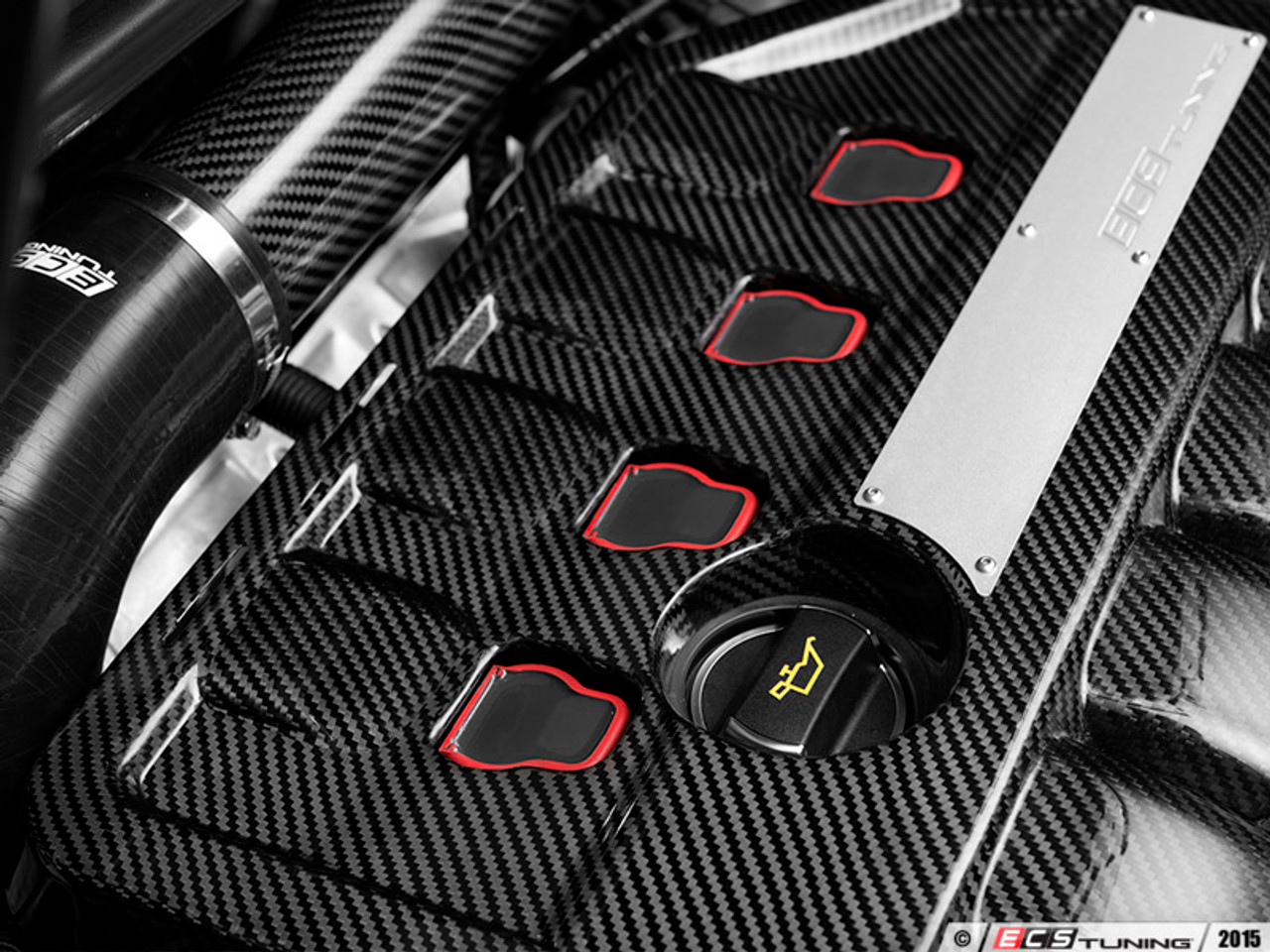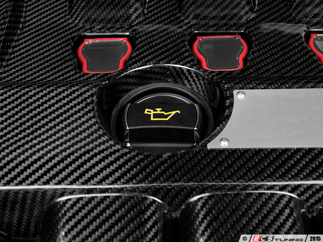Installing the ECS Engine Cover is simple! We pre-install.the unique.engine cover mounting grommets for you, so all you have to do is.remove the old plastic cover, and replace with your new ECS Carbon Fiber Engine Cover!.