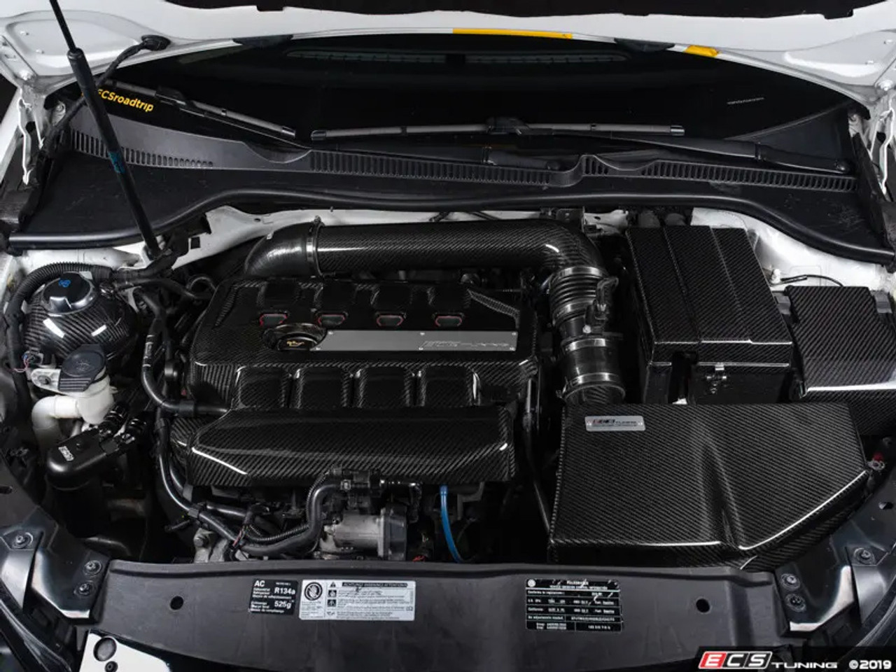 If you’re looking for an easy, inexpensive way to enhance your underhood appearance or if your engine bay could use a touch of premium carbon fiber then we have you COVERED! Our ECS Tuning in-house designed and engineered Carbon Fiber Expansion Tank Cover Kit features precision 3D designed, gloss clear-coated carbon fiber overlays that simply lay over top of your OEM expansion tank and enhances the underhood appeal while covering up the ugly, opaque white plastic coolant ball.
