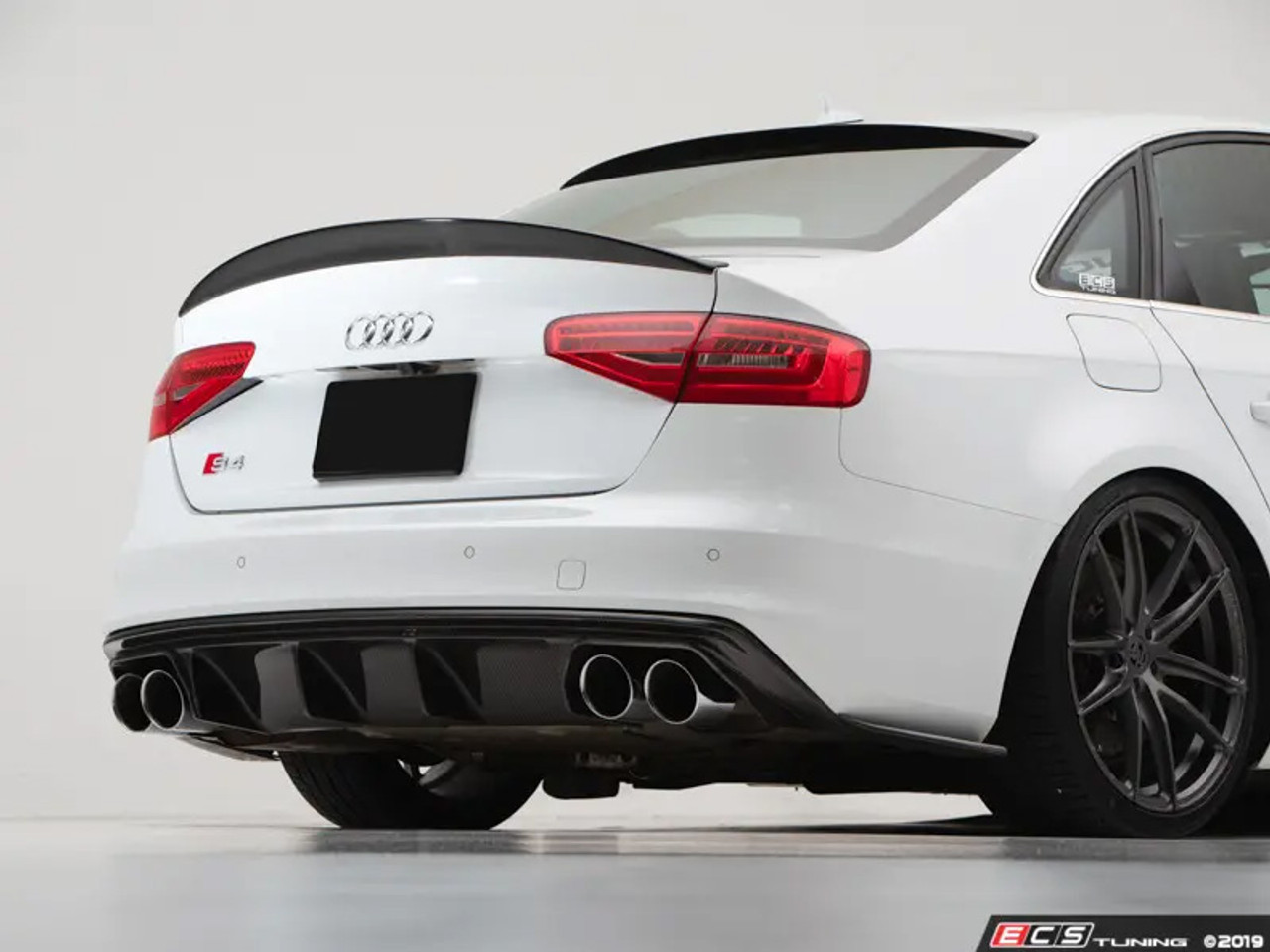 Upgrade your exterior styling on your Audi with the ECS Tuning Gloss Black Trunk Spoiler. This trunk spoiler was engineered in-house and designed to follow the curves and lines of the body to offer a more aggressive look that matches the factory appeal of the B8/B8.5 S4. The spoiler is crafted of a durable UV stabilized ABS polymer to achieve it’s deep high gloss shine and provides a sporty style that’s sure to set your vehicle apart from the rest. Installs with no drilling, cutting, or modification of any kind required. After you have everything lined up and the surface clean of any contaminants, simply remove the liner on the already attached high strength dual sided tape and press the spoiler firmly onto the trunk lid. Install the spoiler as-is or with proper surface prep, this spoiler can be painted to any color you like!