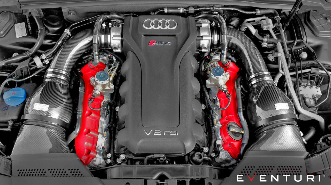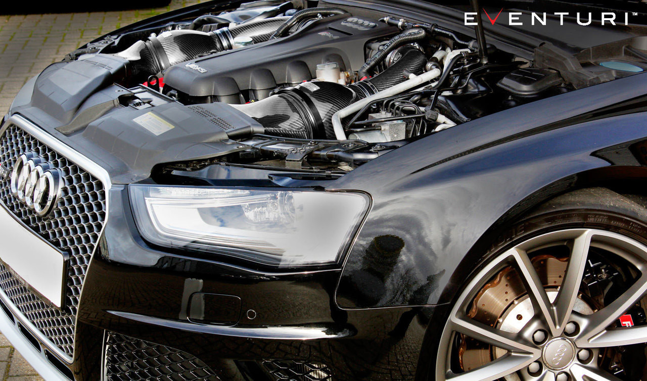 The Audi RS5/RS4 Eventuri intake was developed after consultation and support from RS5 enthusiasts. We have completely re-engineered the inlet track from the ducts to the filters and the inlet tubes. The restrictive stock airboxes and duct feeds have been replaced with a highly efficient – fully sealed system with smooth transitions to allow the airflow to remain full and laminar. The resulting performance gains, sound and aesthetics are industry leading for this platform.