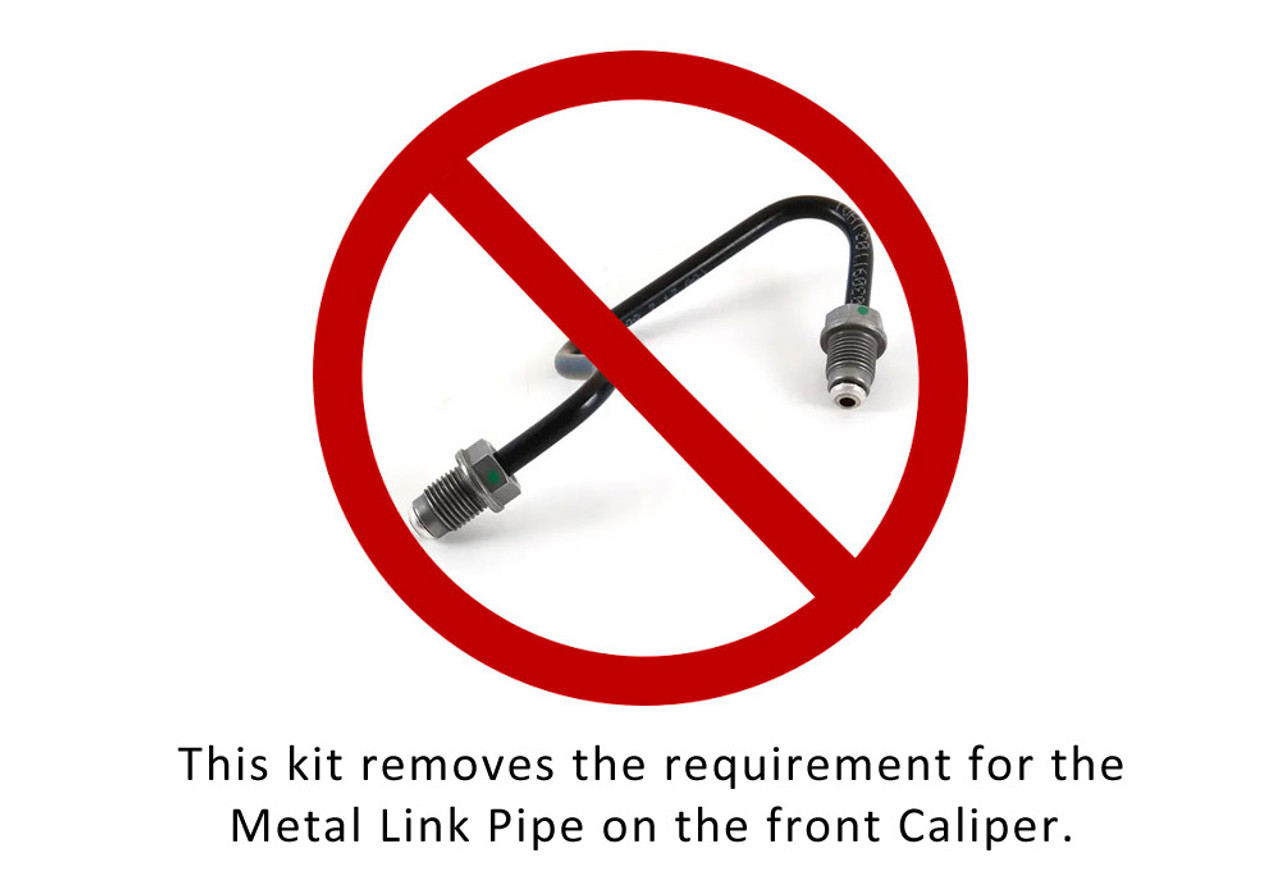 This kit removes the Metal Link Pipe on the front caliper, and comes with Banjo Fit Hoses and Bolts so that the front hoses are Direct to Caliper.