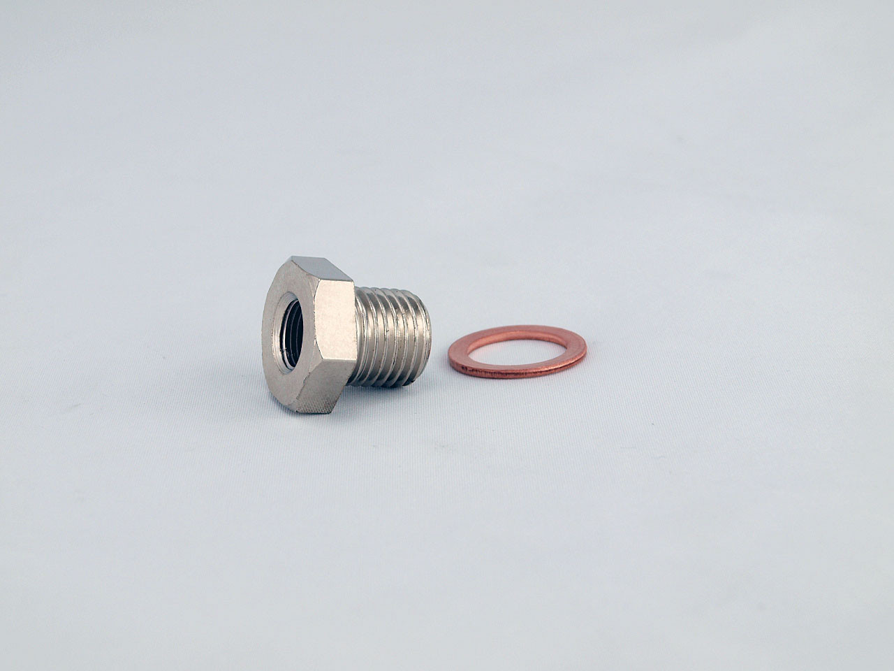 Used for attaching a 1/8″ NPT oil temperature sender in the oil pan. Made from steel like the original VW/Audi drain plug, it also comes with a genuine VAG aluminum crush washer.
