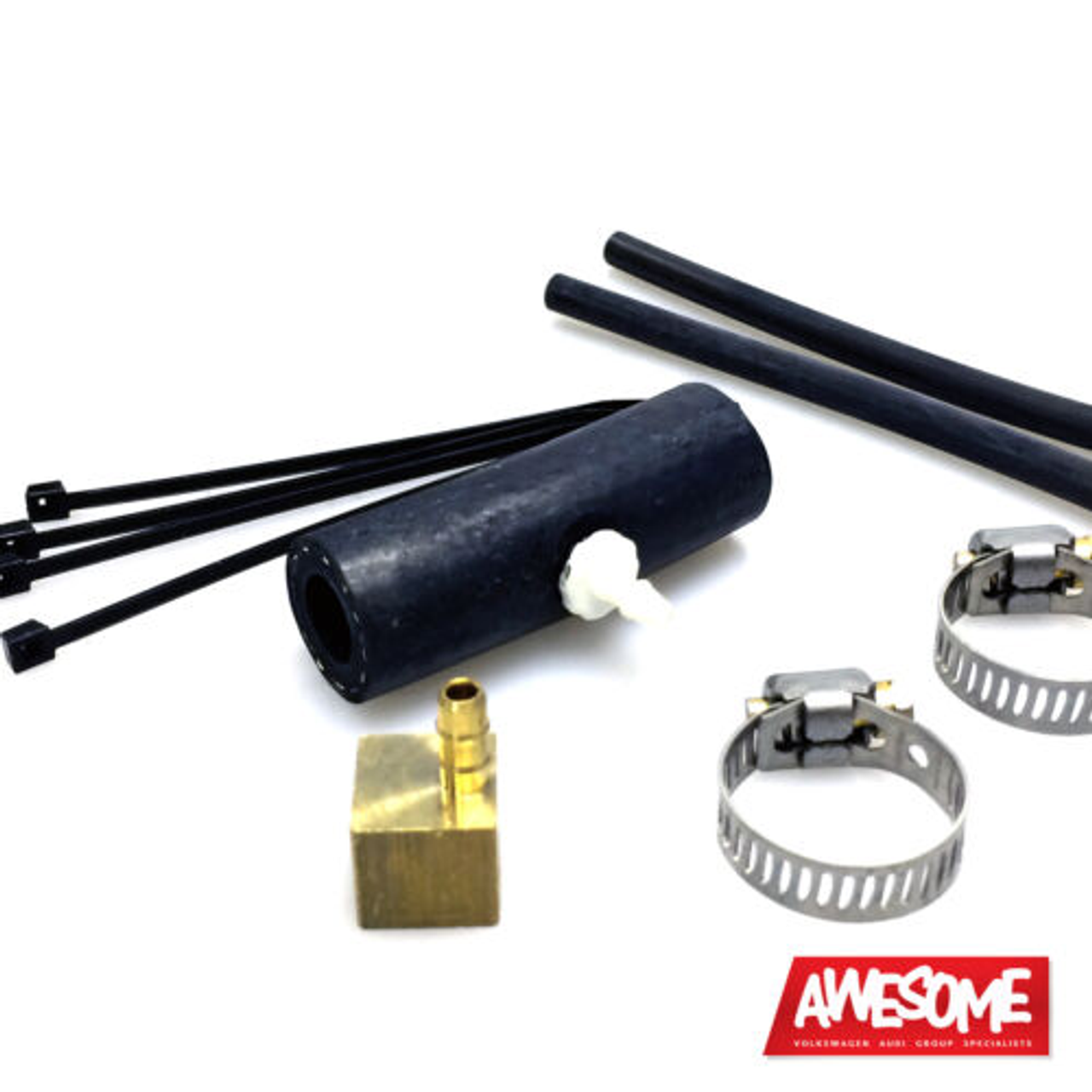 For VW Mk5 2.0 FSI engines. Includes 6′ nylon tubing, brass barb connectors, zip ties, clamps